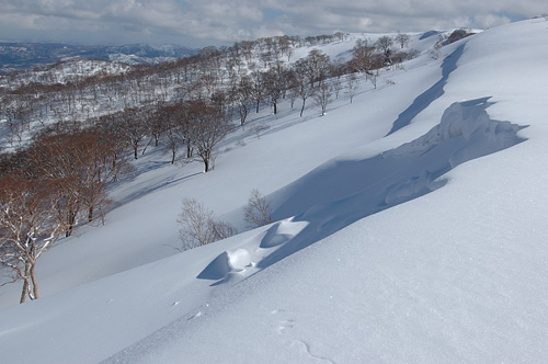 大日ガ岳北尾根、北東斜面の広大な雪原